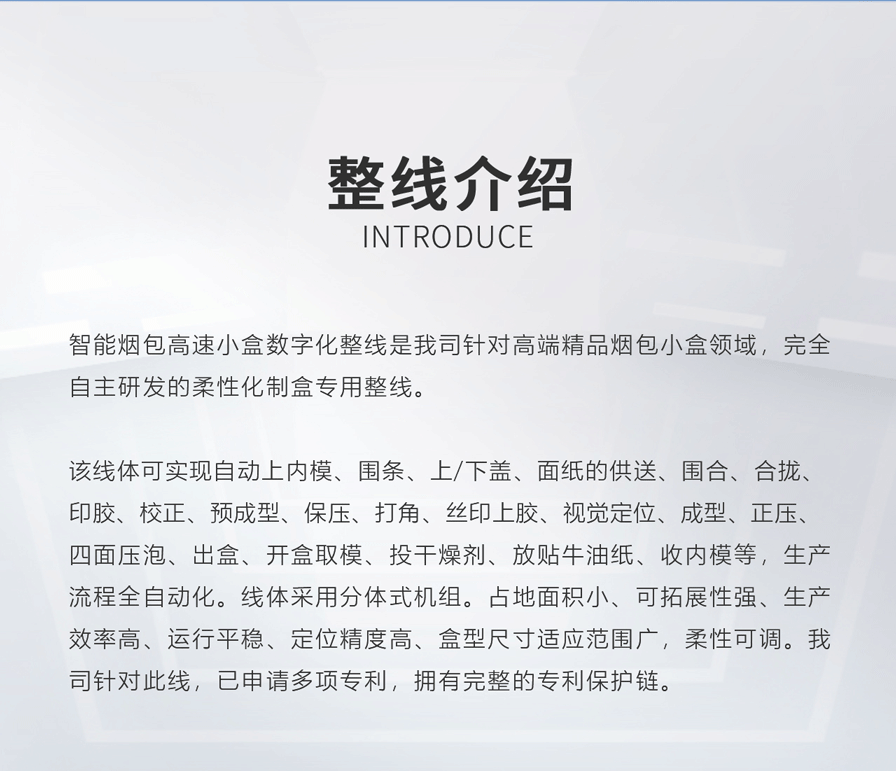 中科天工TG-CA60P智能高速煙包開口盒數字化整線是我司針對高端煙包領域完全自主研發的開口盒高速專用整線。